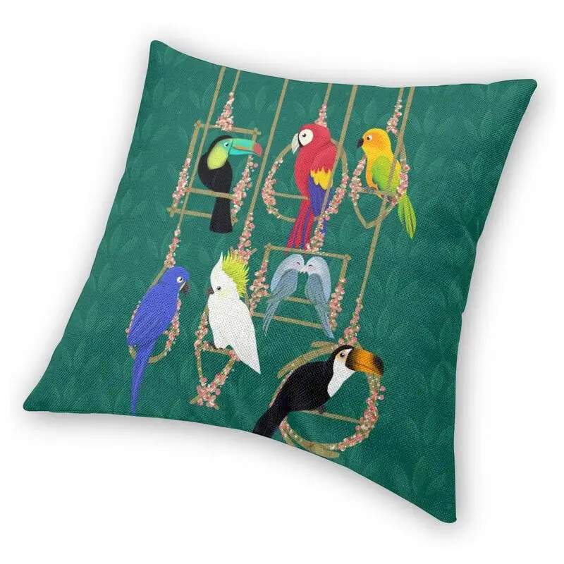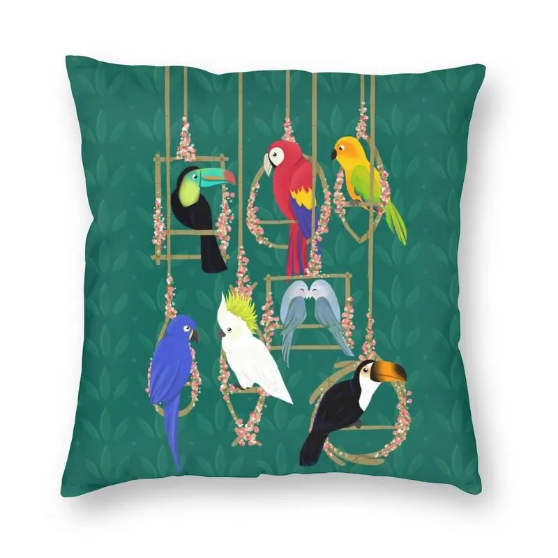 Наволочка для подушки в виде попугаев, птиц, садов, домашняя декора...