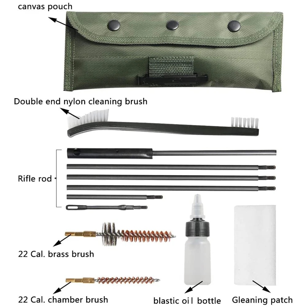 Набор для чистки тактического пистолета, 12 шт., щетка для чистки пистолета, ружья, стержень для чистки пистолета, стержень для калибра 22 дюймов, 22 дюйма, 223 дюйма, 556 дюйма, с чехлом