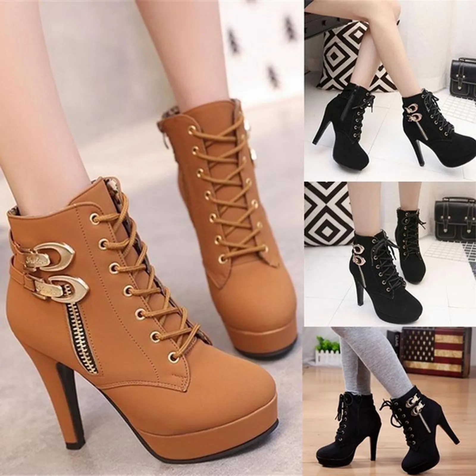 Женские ботинки на высоком каблуке ботинки на тонком каблуке с боковой молнией короткие ботинки на шнуровке