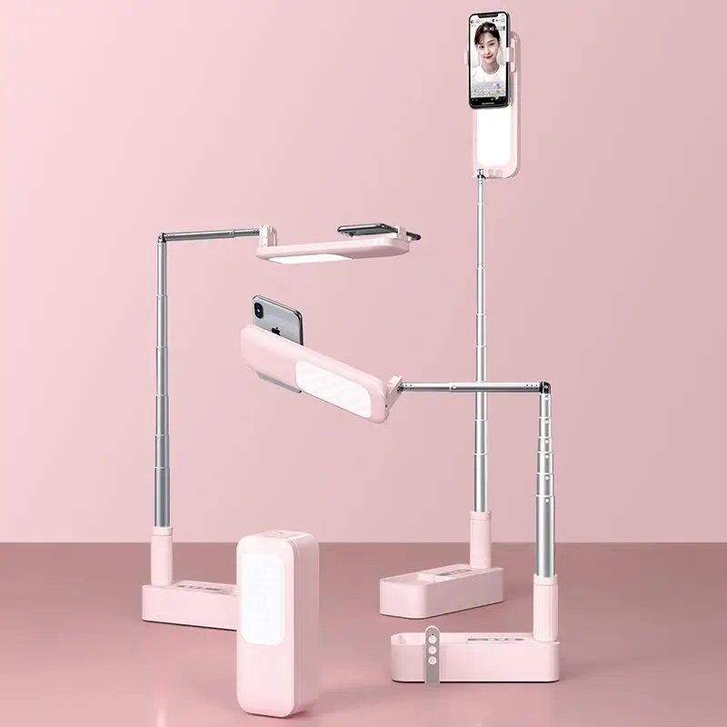 Портативный штатив со светодиодной подсветкой для селфи, лампа с держателем для телефона, подставка для телефона, автомобиль, совместимая с Bluetooth-камерой