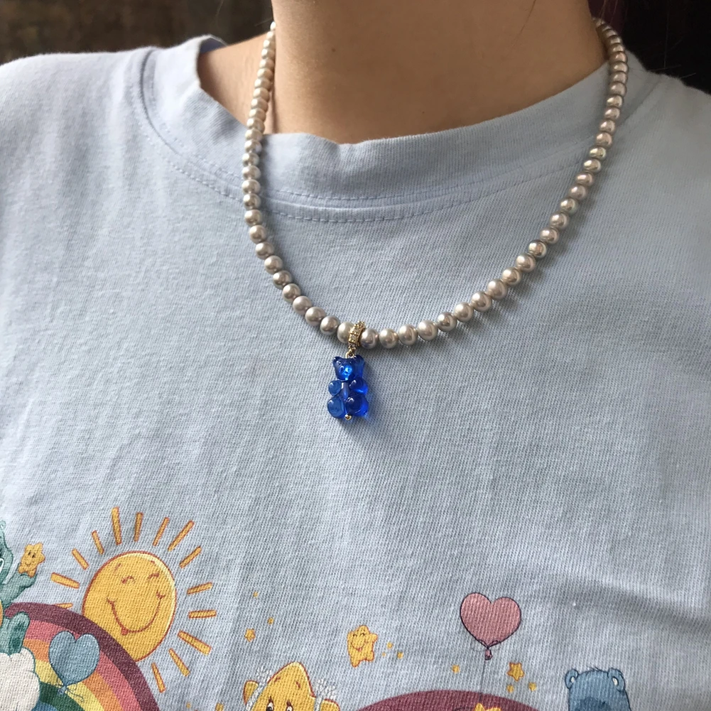Женское колье-чокер с жемчужными мишками, корейский цвет, полимерны...