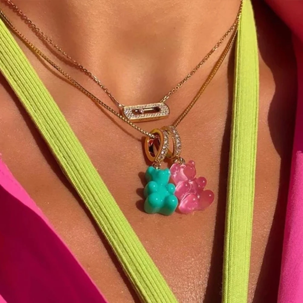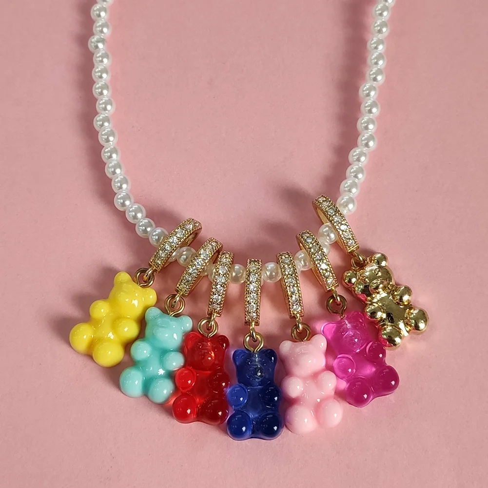 Новое Радужное полимерное ожерелье с жемчужными бусинами медведя из...