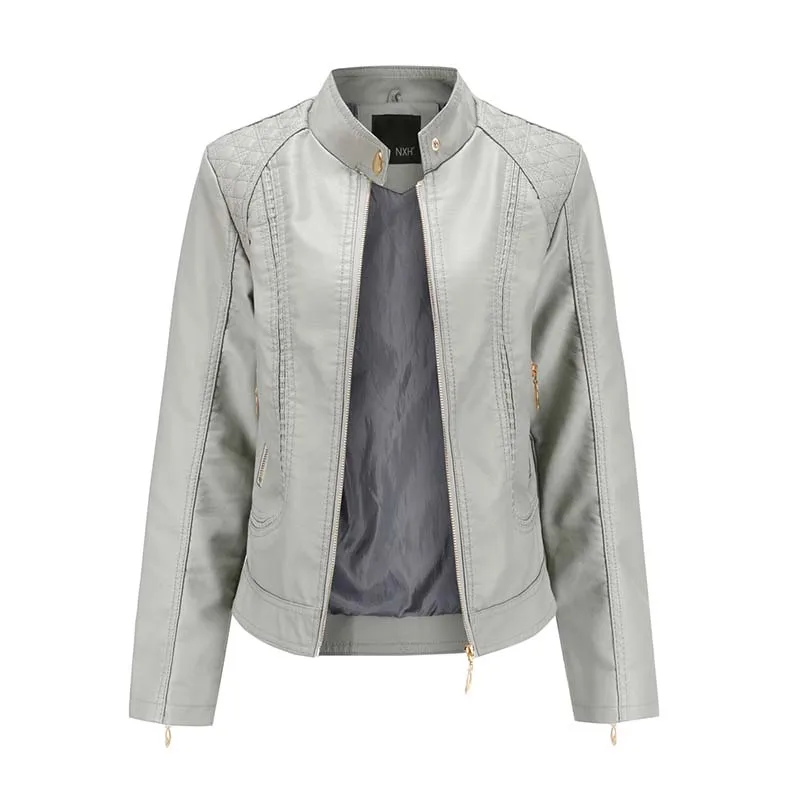 Осенне-зимняя уличная куртка из искусственной кожи женская однотонная куртка с воротником-стойкой и длинными рукавами на молнии