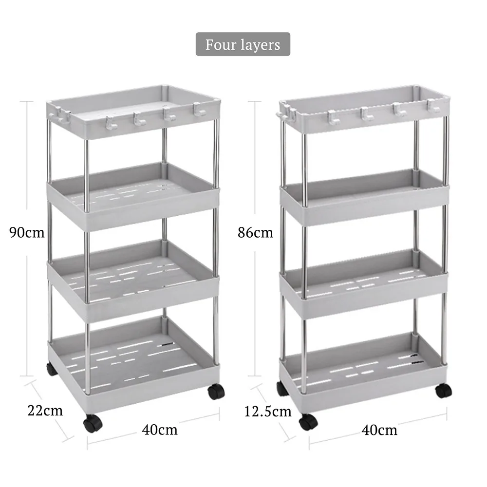 3/4 ярусная тонкая тележка для хранения, передвижной стеллаж, органайзер, скользящий стеллаж для хранения, тележка для кухни, ванной комнаты