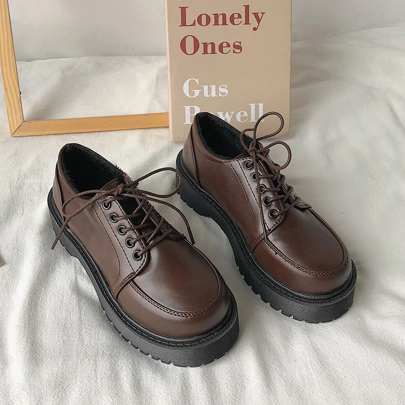 Женские ботинки на толстой подошве, Осенние британские студенческие...
