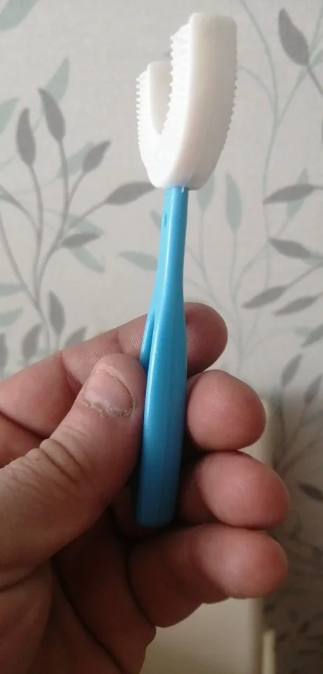Очень классная штука, ребёнок 2.5 года теперь сам хочет чистить зубы. Промывать тоже удобно, проще чем классическую зубную щётку. Щетинки в два ряда. Наверное, чистит не так эффективно, как обычная, но с функцией приучения к гигиене точно справляется