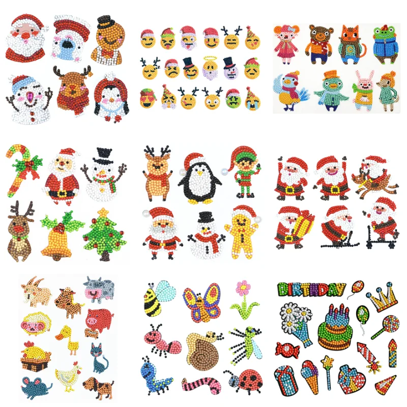 6/9 шт DIY Алмазная картина наклейки мультфильм животное Санта-Клаус Снеговик самоклеющиеся наклейки для детей Детский Рождественский подарок