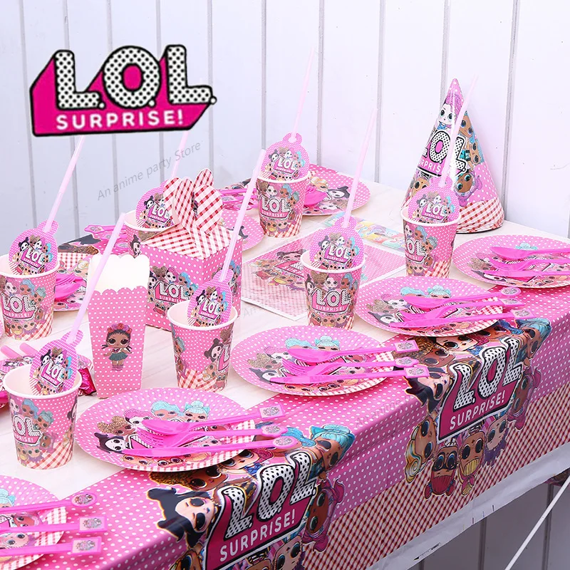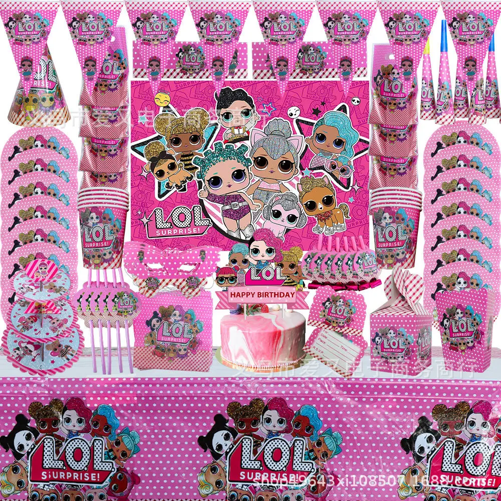 Куклы-сюрпризы LOL, посуда для дня рождения, украшение для детского дня рождения, бумажные соломинки, тарелки, скатерть, фон