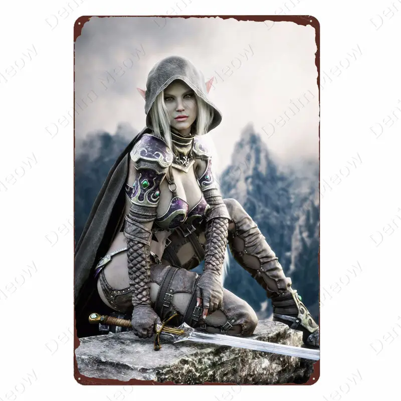 Фэнтези лучник девушка Винтаж металлический знак воин девушка Настенный декор для бара клуба комнаты человек пещера деревенский домашний Декор постер с ангелом ZSS87