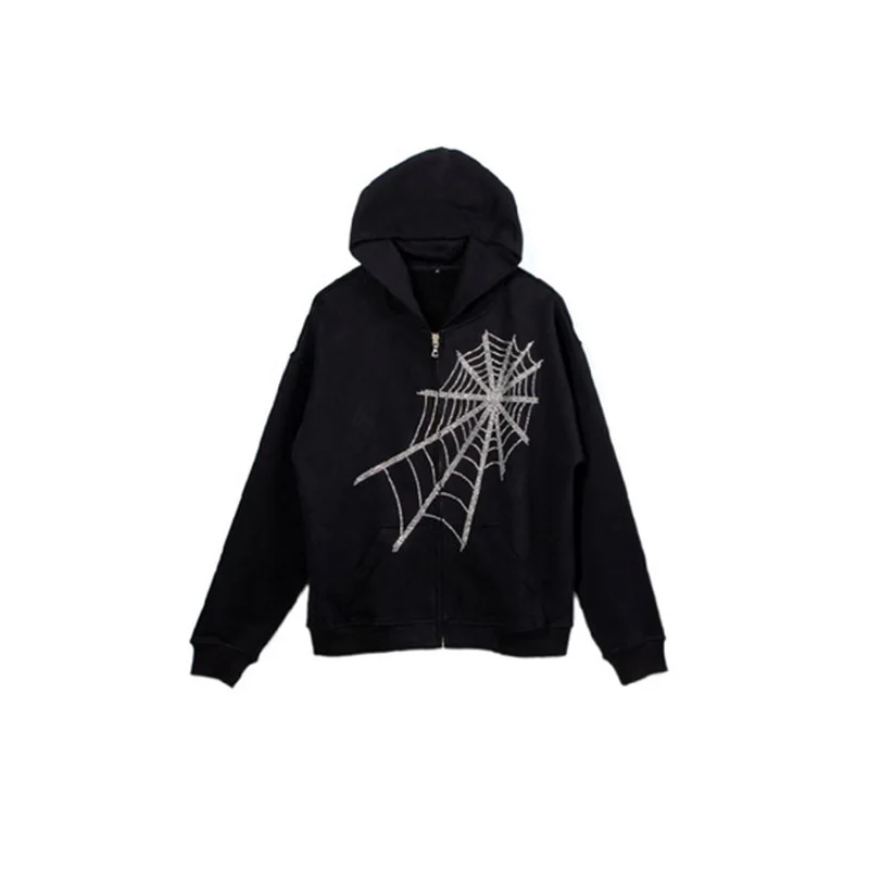 Толстовка Стразы в готическом стиле на молнии с изображением паутин...