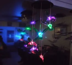 Я купил это в качестве подарка для моей мамы, которая любит украшения для двора на открытом воздухе. Сборка не требуется; Просто вытяните его из коробки и Повесьте. К нему уже прикреплен крючок. Мы повесили его на улицу в течение дня, чтобы замочить на солнце и скользить по кнопке под верхней частью, и загораются цветные шары.