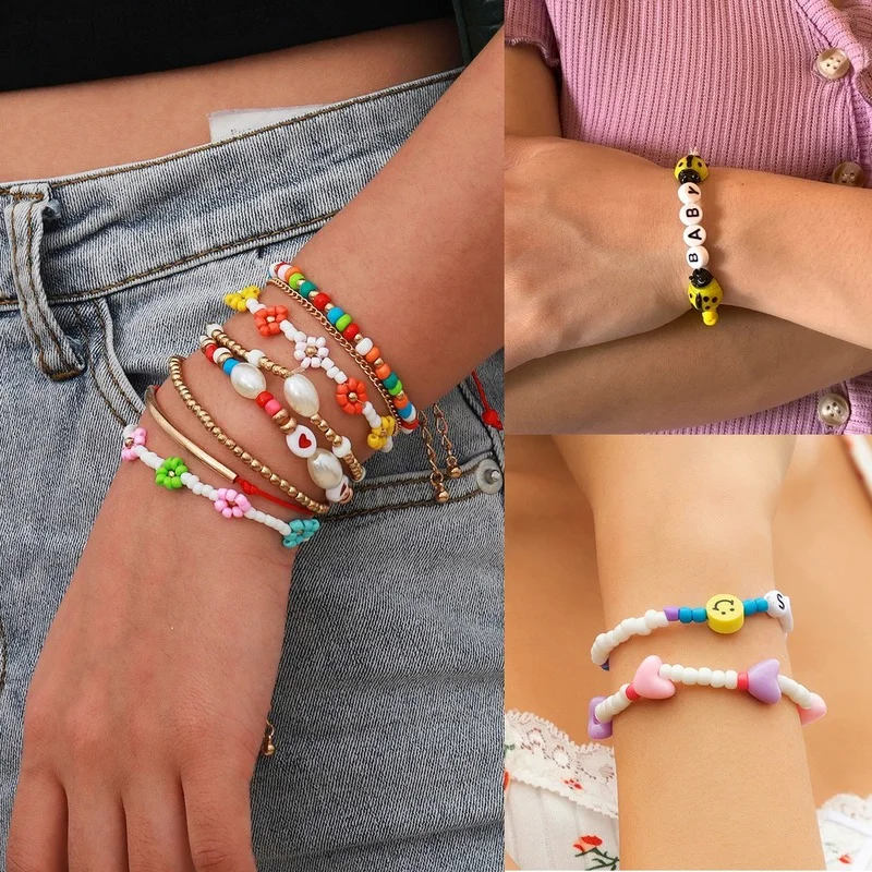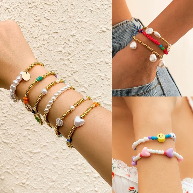 Европейский и американский богемный Набор браслетов из бисера контрастный бежевый плетеный браслет с подвеской женские ювелирные изделия