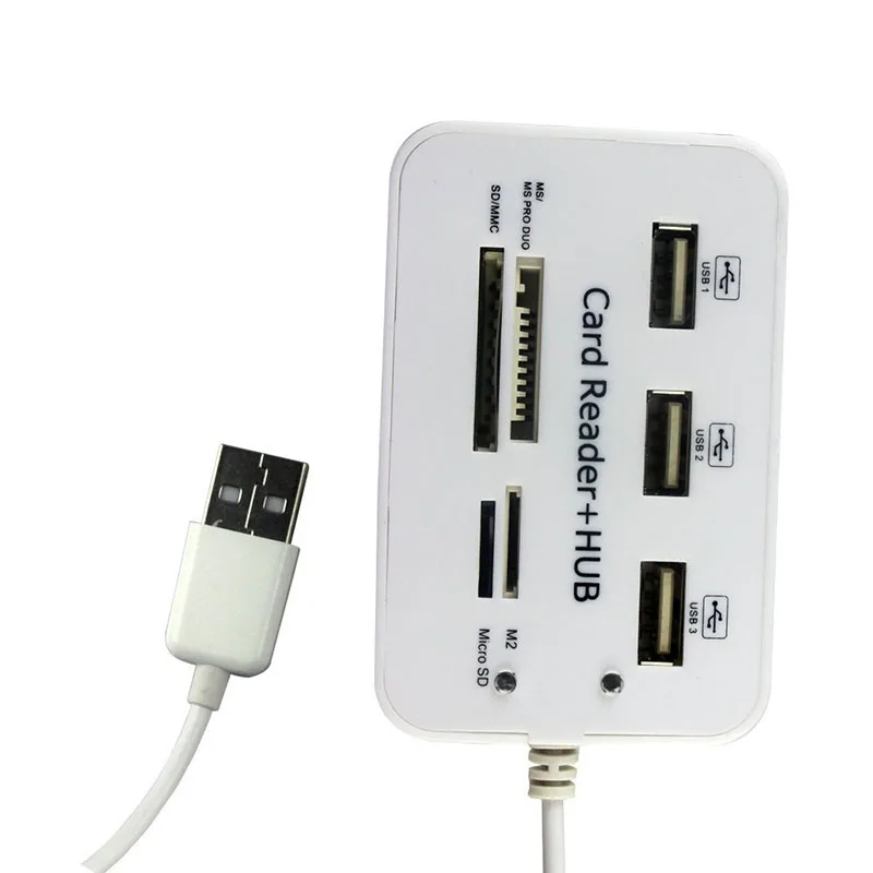 Feature 1USB 3 port HUB Combo Card Reader for SD MMC M2 MS