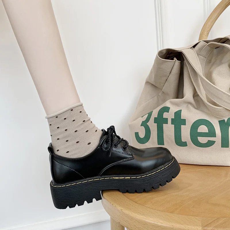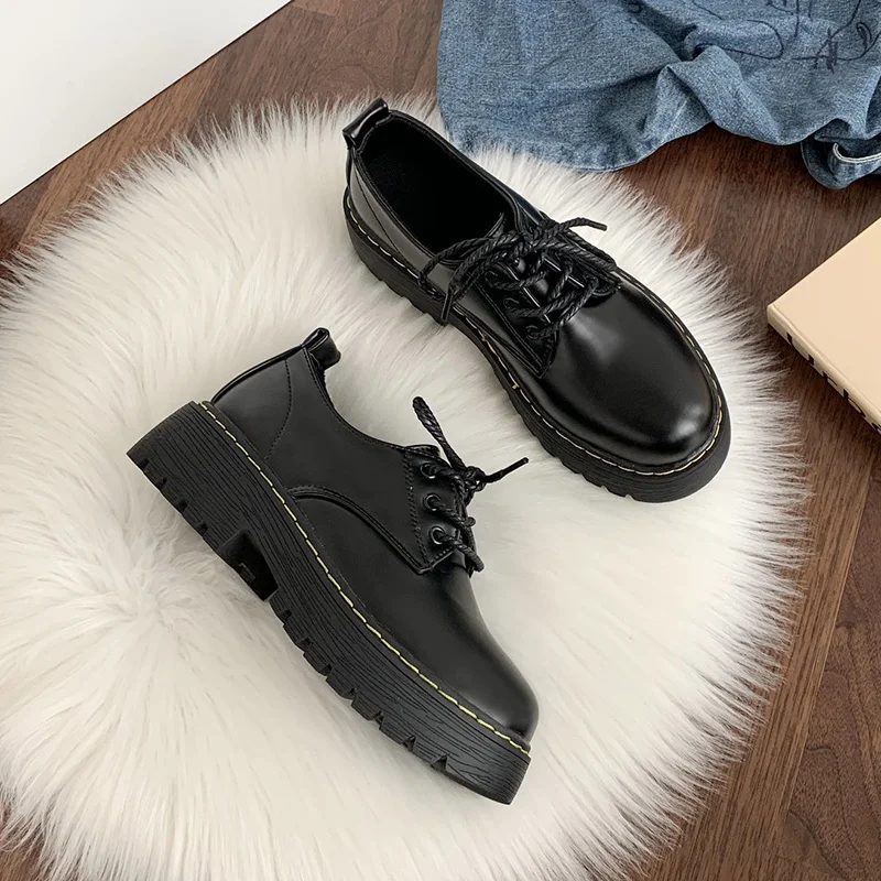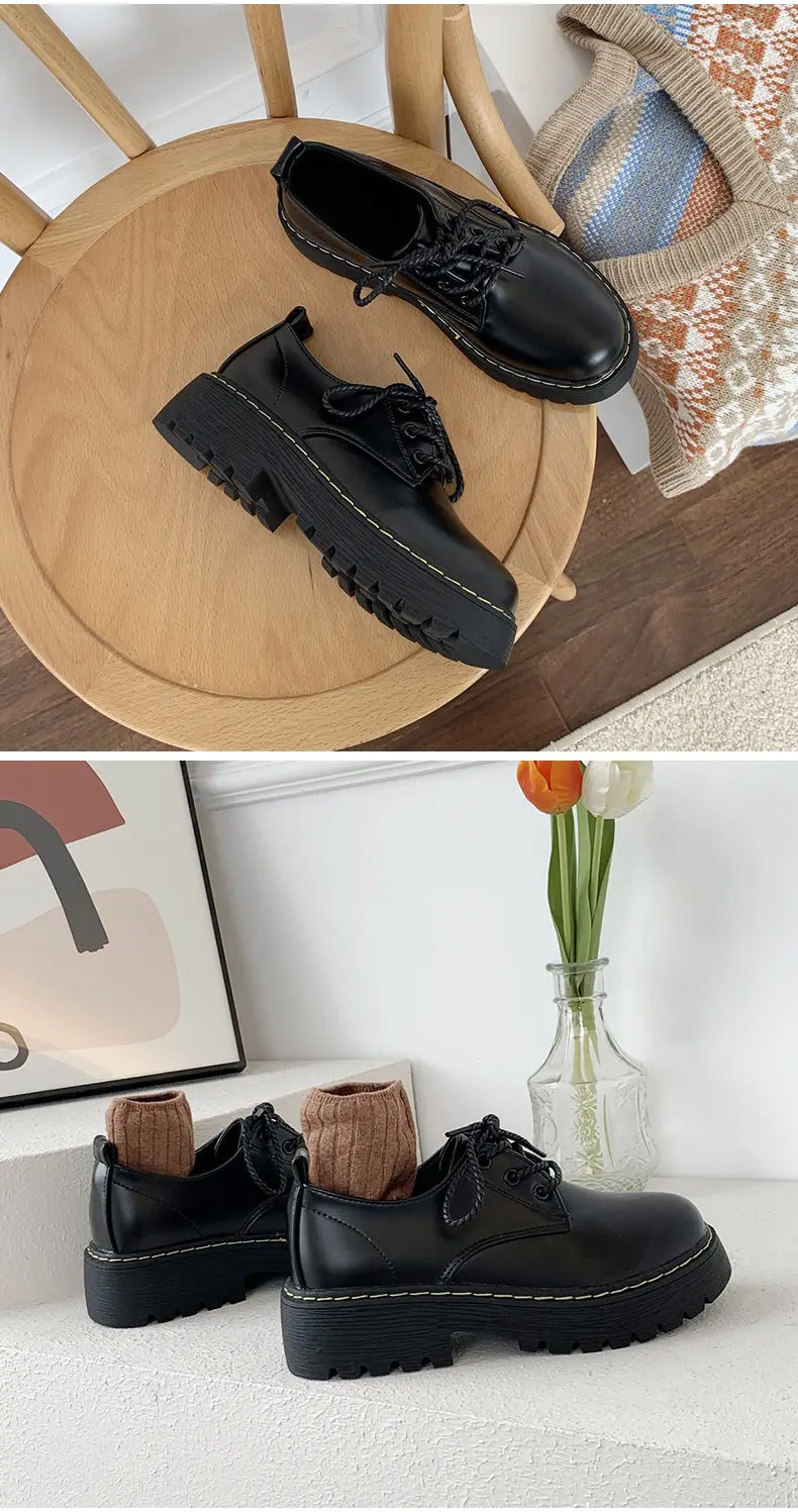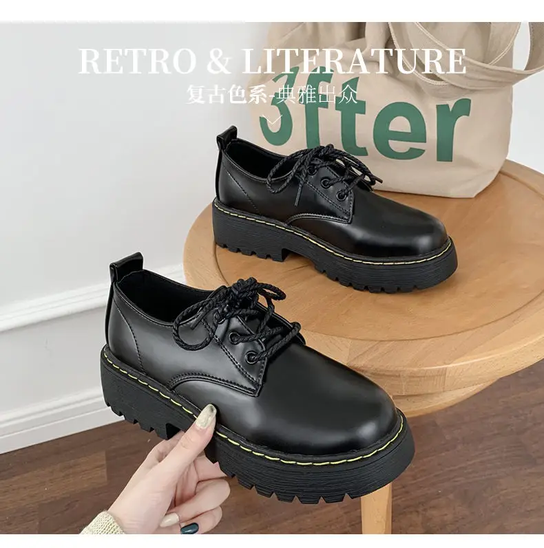 Женские ботинки на толстой подошве, Осенние британские студенческие...