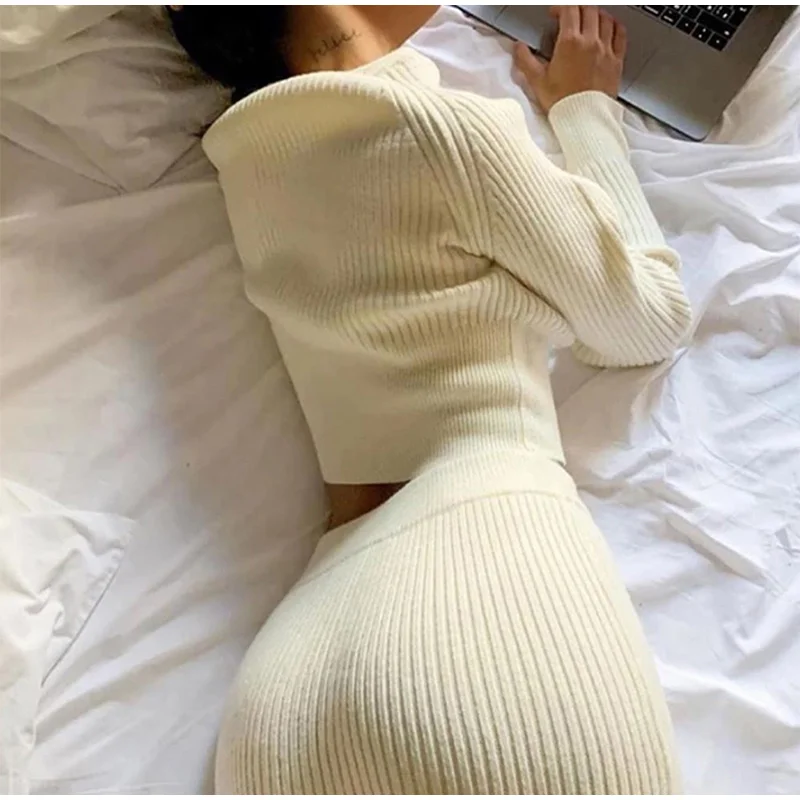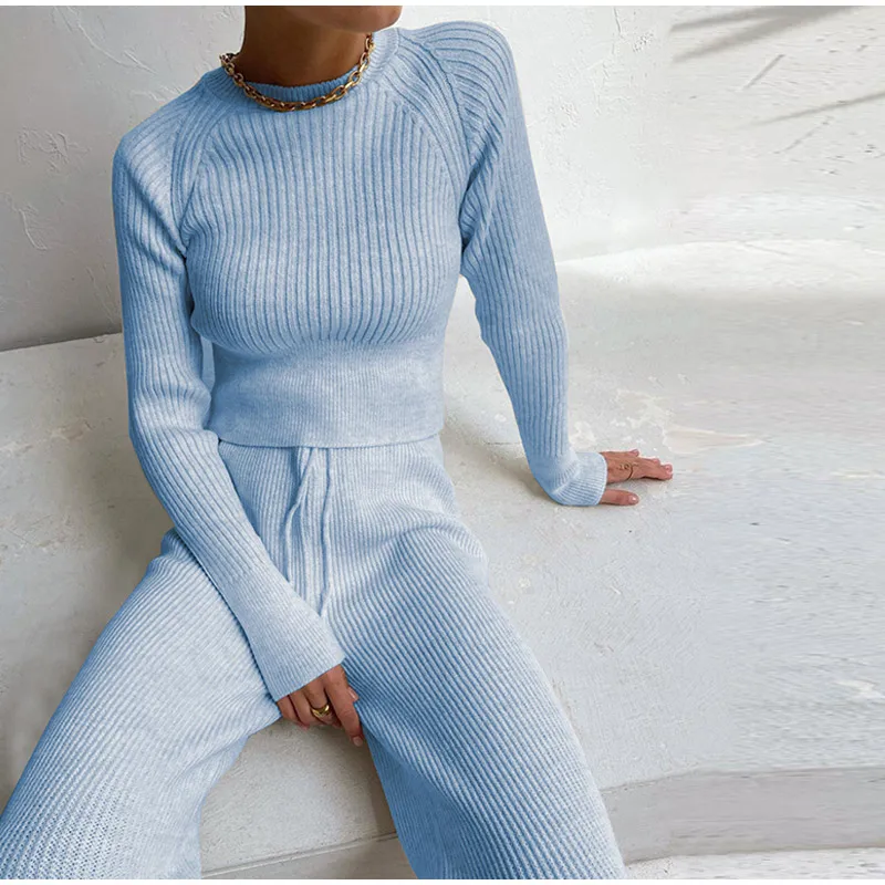 Женский однотонный трикотажный свитер, Повседневный пуловер с круглым вырезом и брюки на шнурке, домашний костюм на осень и зиму