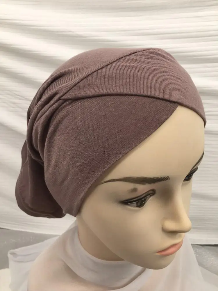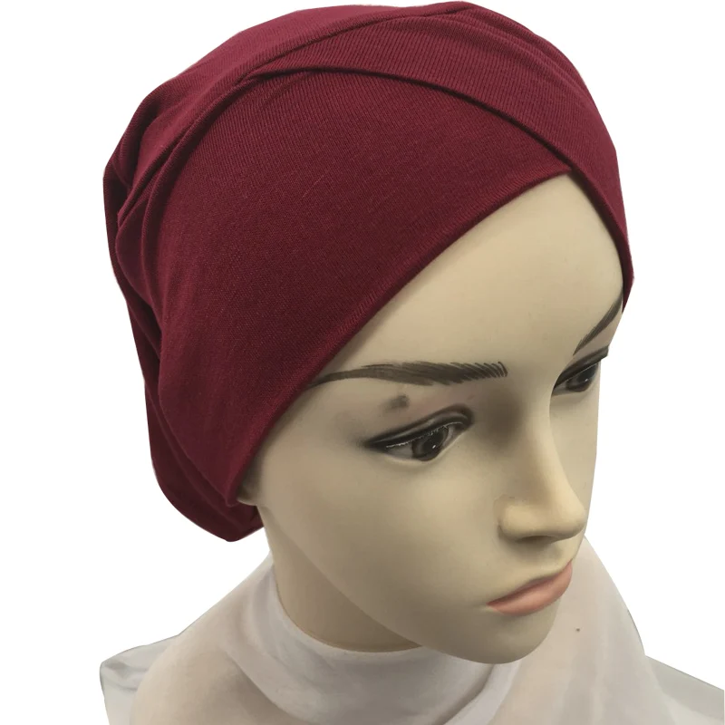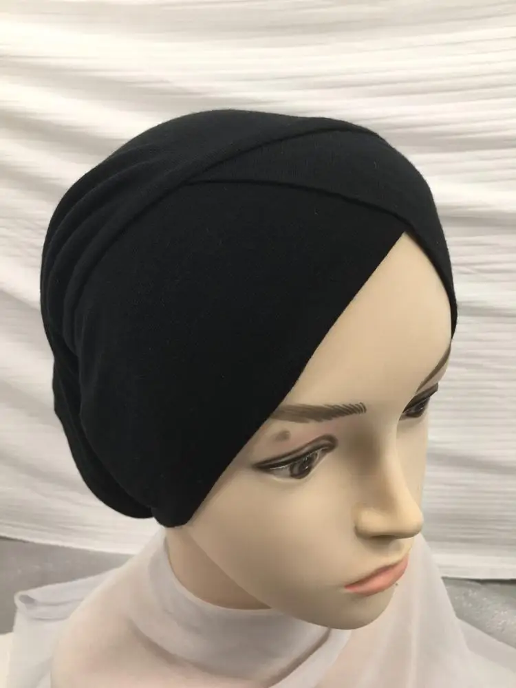 Новинка, эластичная трикотажная футболка H228 из модала с перекрестными полосами, Женский мусульманский шарф-тюрбан, шапочка, исламский шарф, повязка-труба, шапки