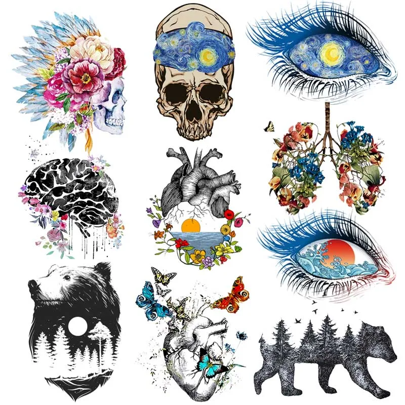 Аппликация с черепом, термоклейкие Переводные цветы, лошадь, теплов...