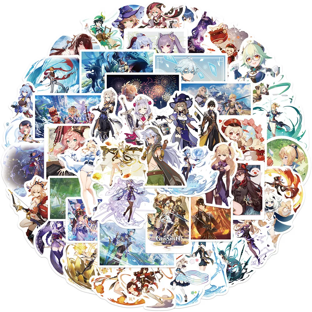 50 шт. аниме геншин ударная игра граффити наклейки мультфильм водон...