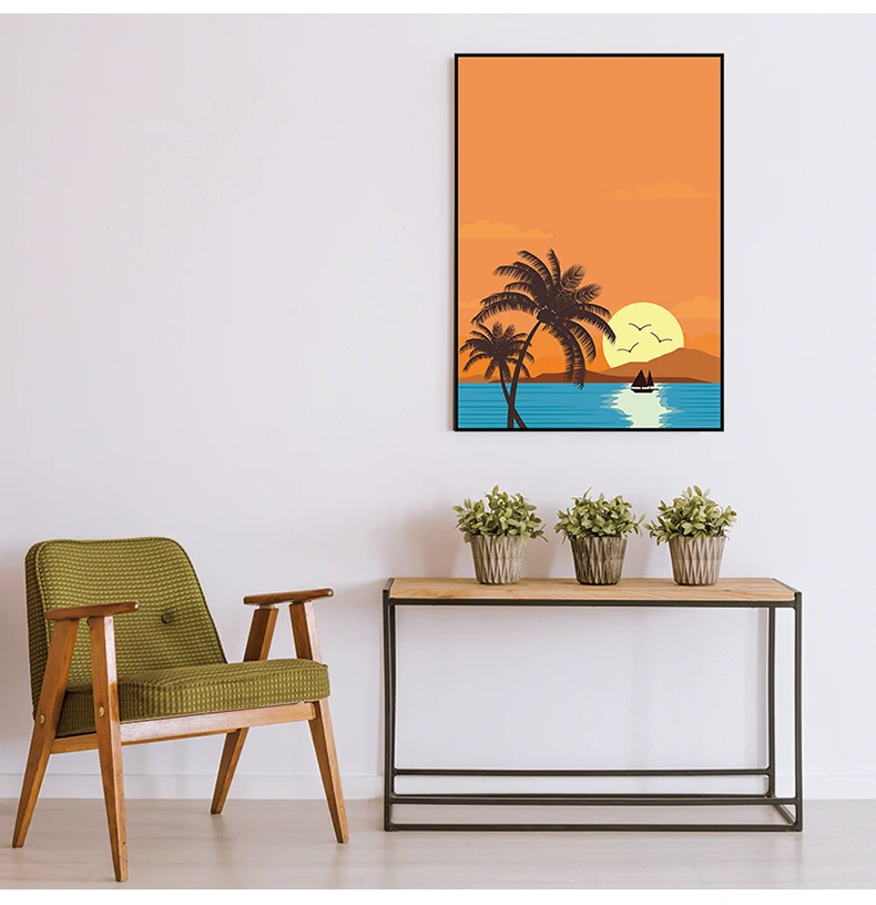Декоративная картина, Настенная картина с обрамленным изображением пляжа, Масляная картина с цифровым пейзажем, рисунок на холсте, подарок, украшение для дома