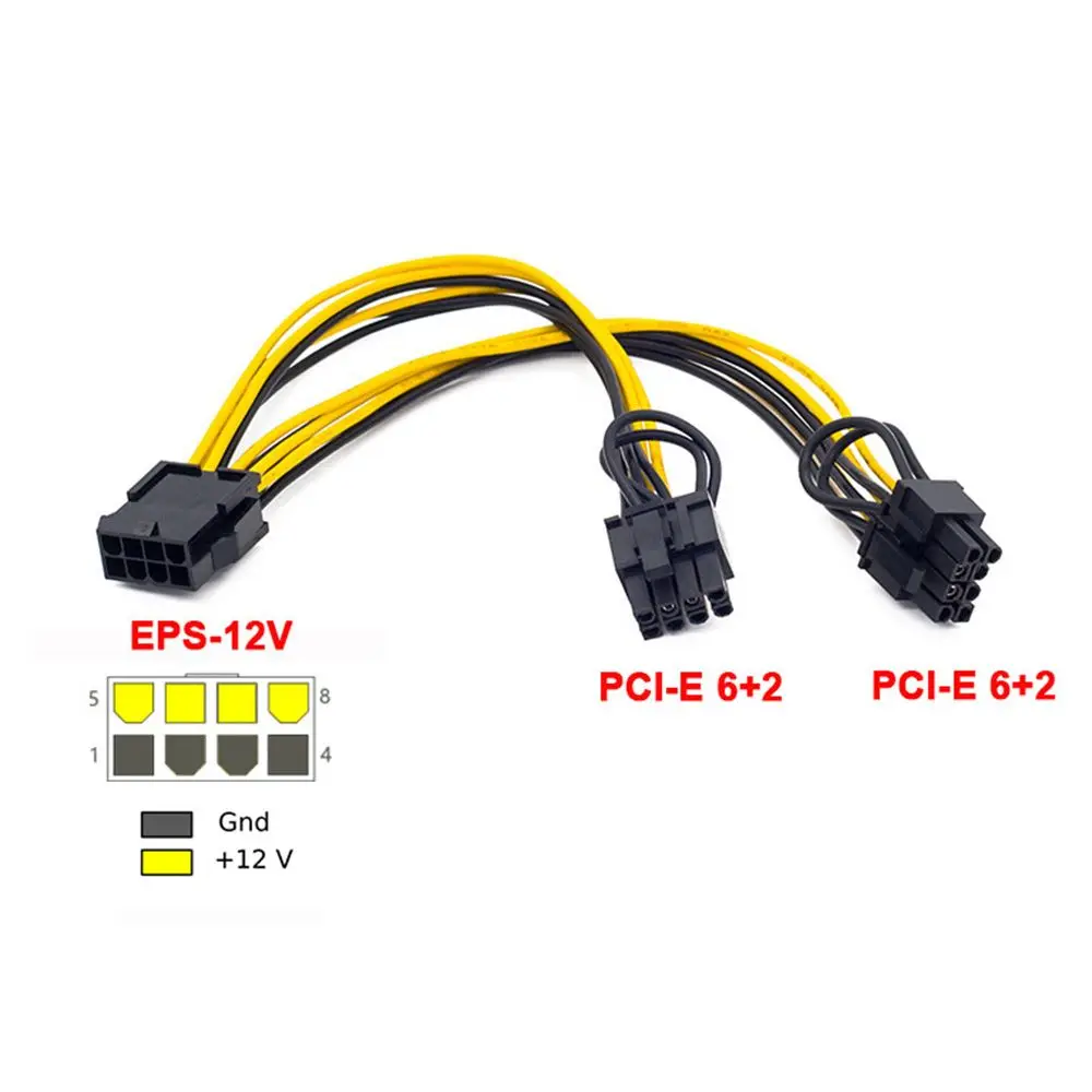 Кабель-разветвитель PCI-E, кабель питания EPS CPU GPU, кабель-разветвитель графической карты, кабель с 8 контактами на два 6 + 2 контакта, 8 контактов на два 8 контакта