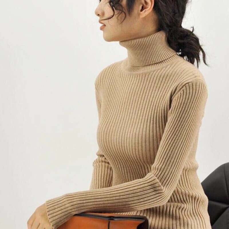 Женские пуловеры с высоким воротником, сезон осень-зима 2021, свитер, супертеплый короткий облегающий плотный джемпер с длинным рукавом, топ, Базовая рубашка