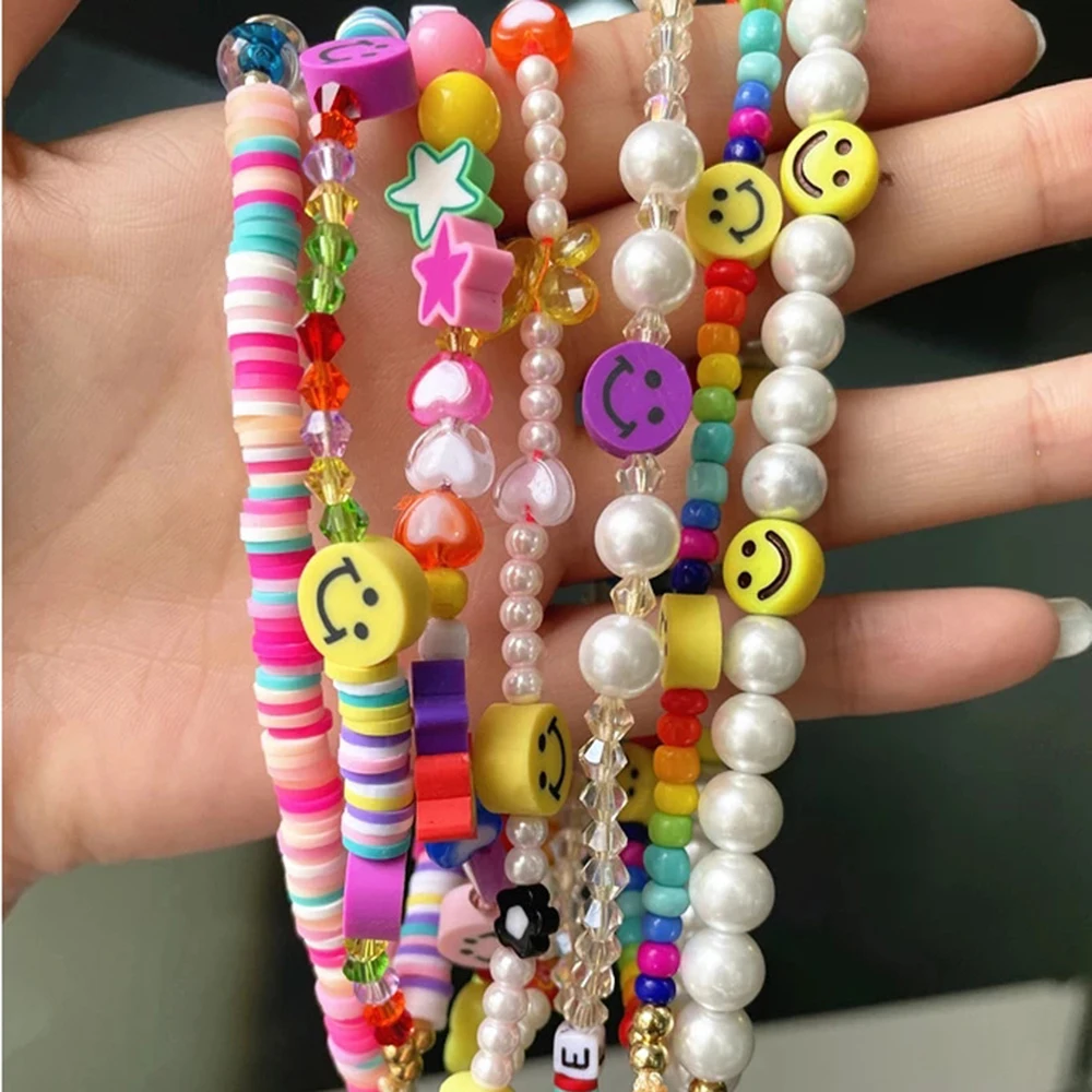 Новинка 2021, Модные Разноцветные Цепочки с бусинами-смайлами для ж...