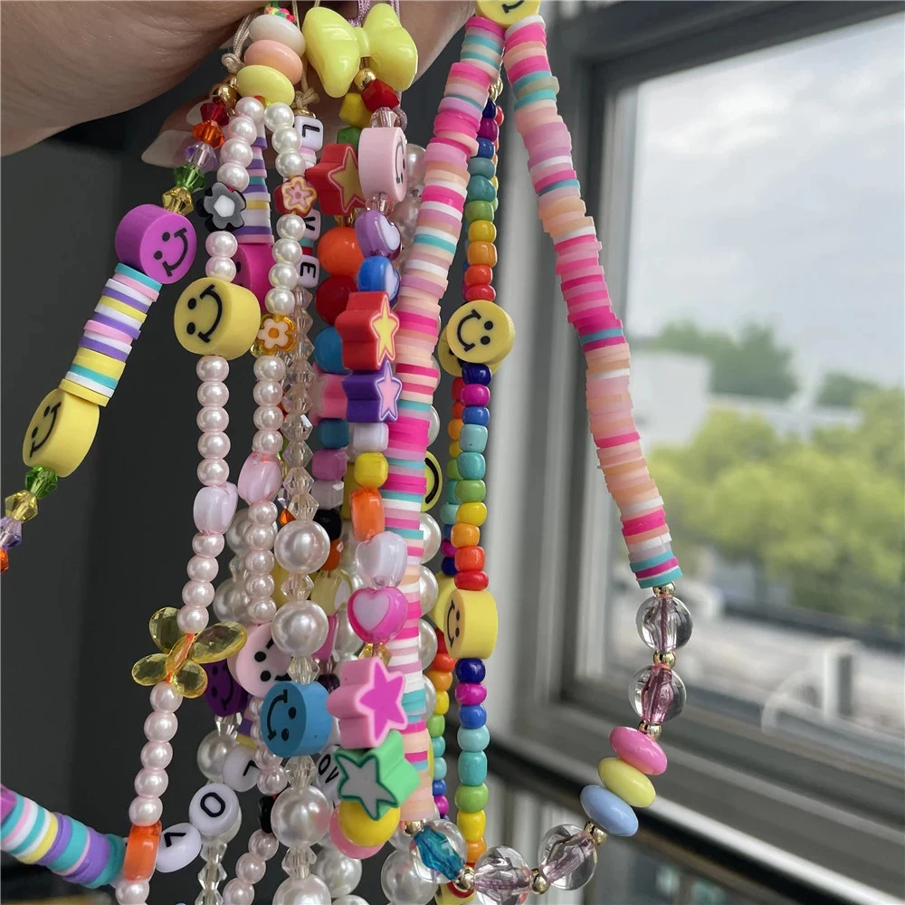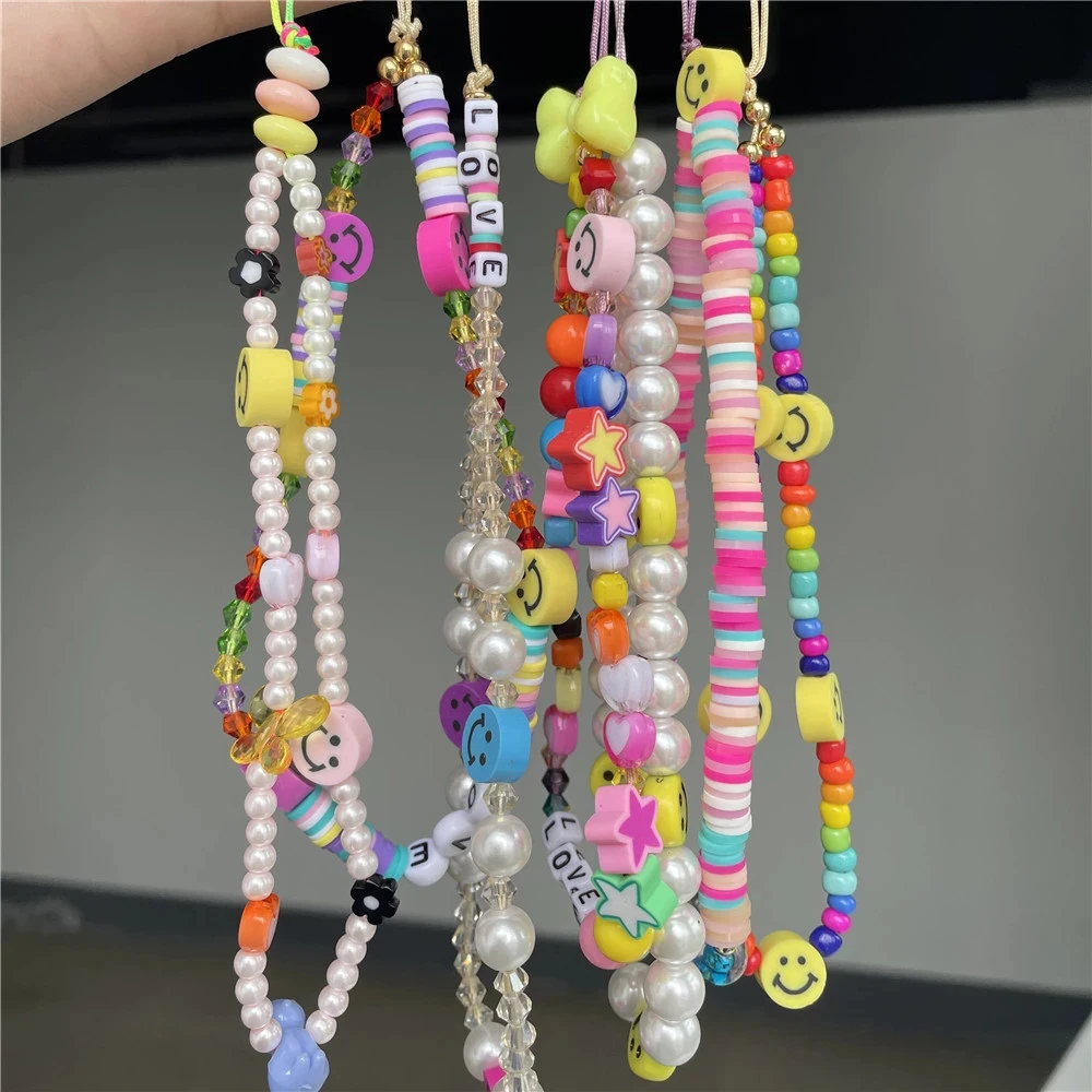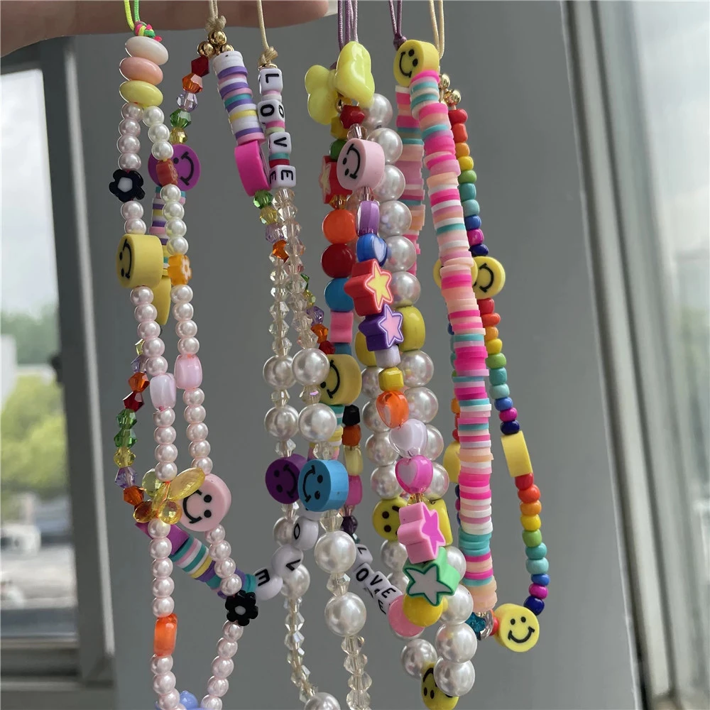 Блестящие бусины "Улыбка" мобильный телефон с цепью ремешки Бохо Ле...