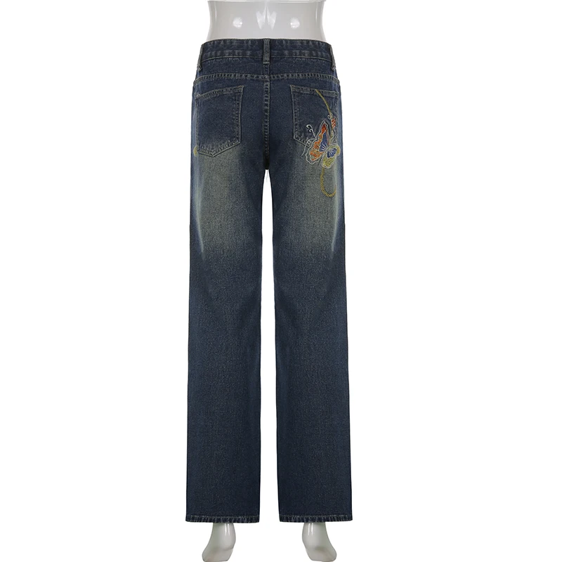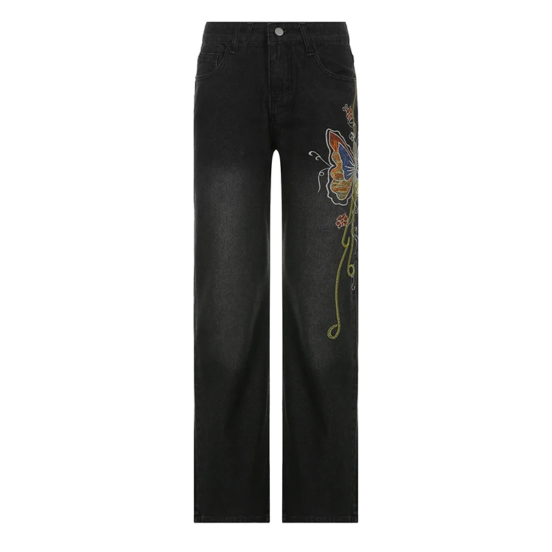 Джинсы женские винтажные с низкой посадкой, вышивкой бабочкой и гра...