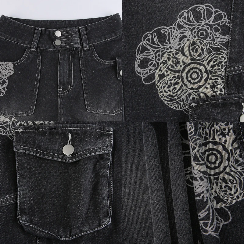 Женские джинсы-бабочки Y2K с принтом бабочки, винтажные брюки-карго оверсайз с заниженной талией в стиле Харадзюку