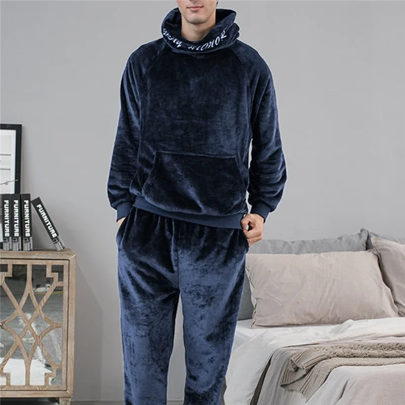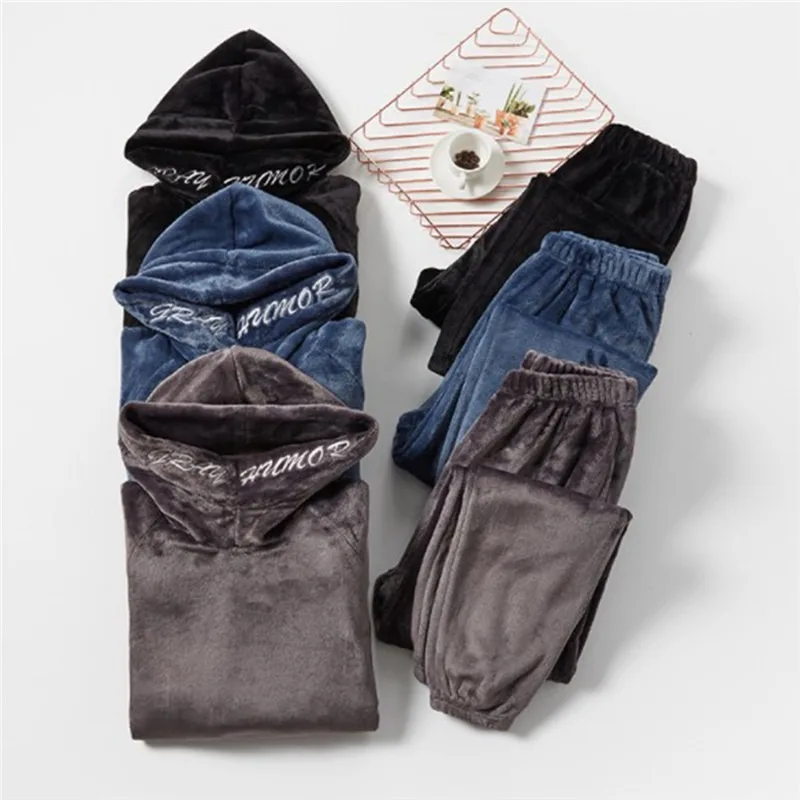 Зимние толстые теплые фланелевые пижамные комплекты Jodimitty для мужчин, одежда для сна с длинным рукавом и капюшоном, домашняя одежда для гостиной