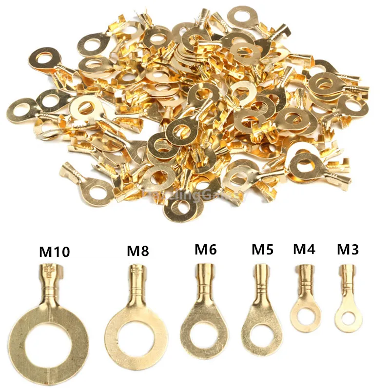 100150 шт. кольцевые кабельные наконечники, бескорпусный неизолированный соединитель в ассортименте, соединители для проводов 3,2-6,2 мм, набор латунных клемм