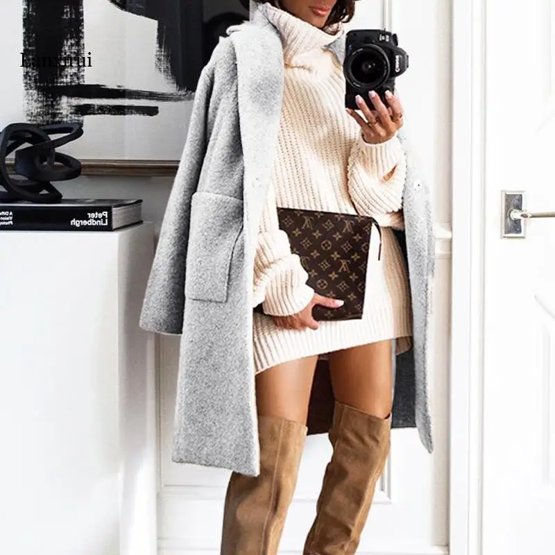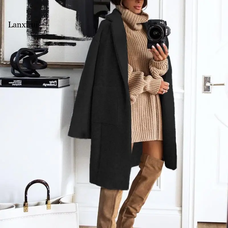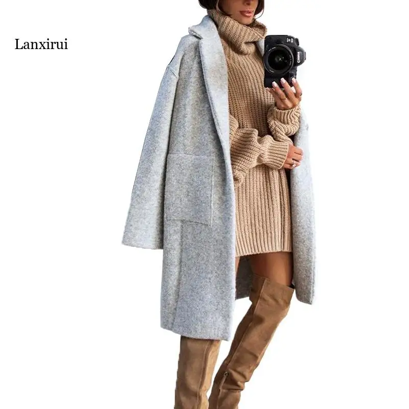 Lanxirui Весна Осень Модное шерстяное простое тонкое длинное пальто...