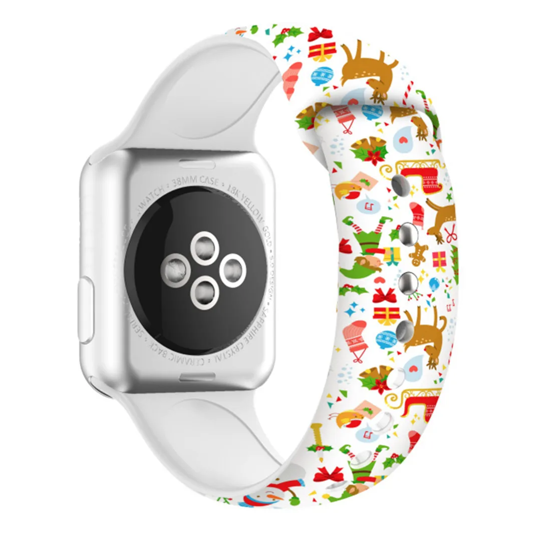 Рождественский спортивный ремешок для Apple Watch band 44 мм 40 мм 38 мм 42 мм с мультяшным принтом, ремешок для часов, браслет IWatch Series 5 4 3 2 1 6 SE