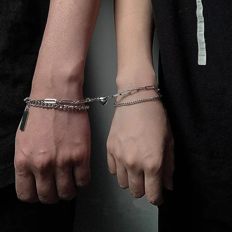 Браслеты из титановой стали для влюбленных пар, браслеты, ожерелья, панк, хип-хоп, браслеты дружбы для влюбленных, ювелирные цепи