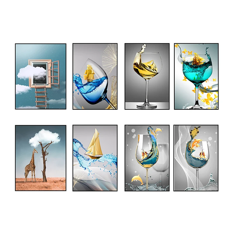 Абстрактная живопись геометрический рисунок красное вино бокал хижина холст живопись Настенная живопись плакат печать для помещений гостиной дома декорации