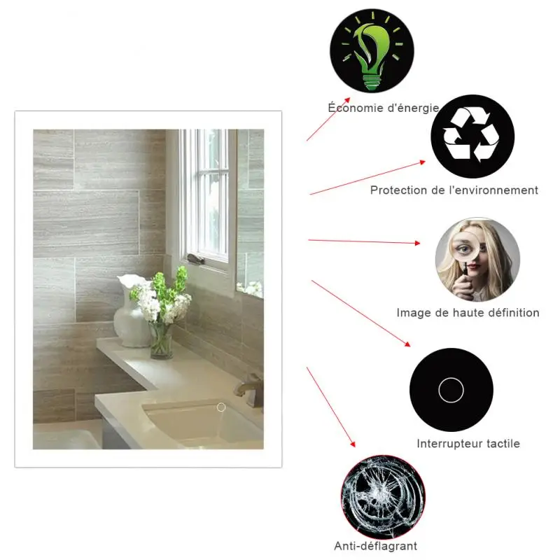 Антизапотевающее светодиодный Зеркало для ванной комнаты, настенное...