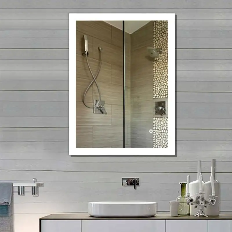 Антизапотевающее высококачественное светодиодное зеркало для ванной комнаты, сенсорное настенное прямоугольное крепление для ванной комнаты, принадлежности HWC