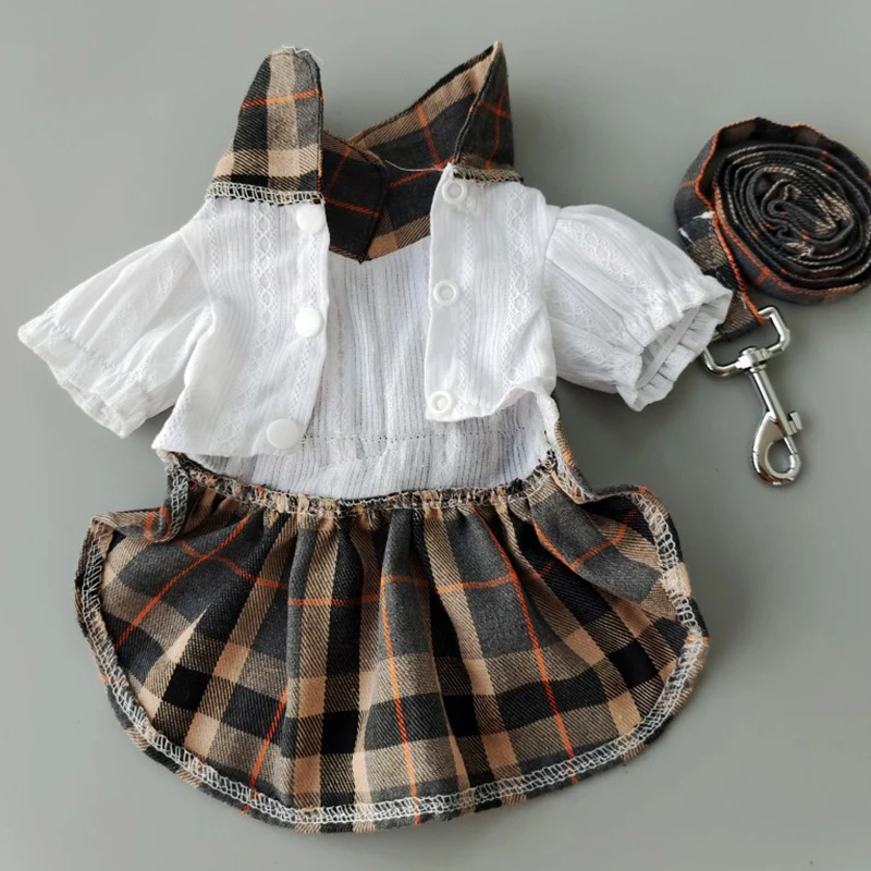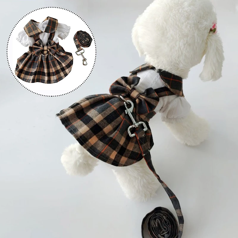 Клетчатые платья для собак в колледже, костюм с поводком, клетчатые...
