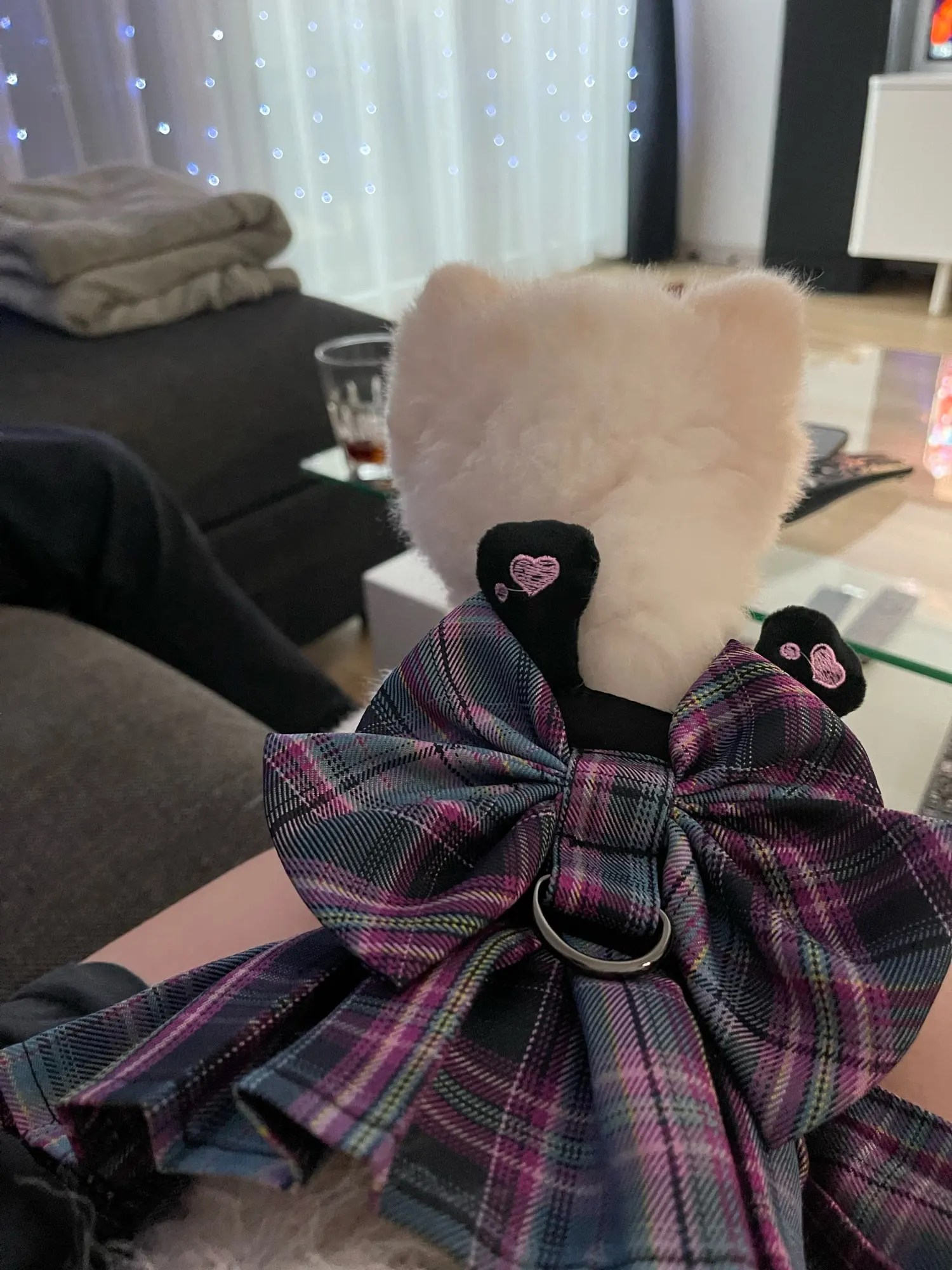 Клетчатая юбка-пачка для ошейника с бантом и нагрудным ремнем, плат...
