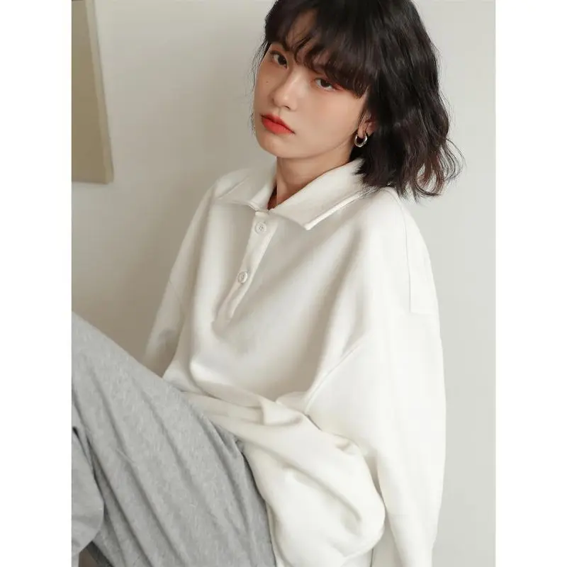 Рубашка-поло с длинными рукавами, тонкая кофта в Корейском стиле, с...