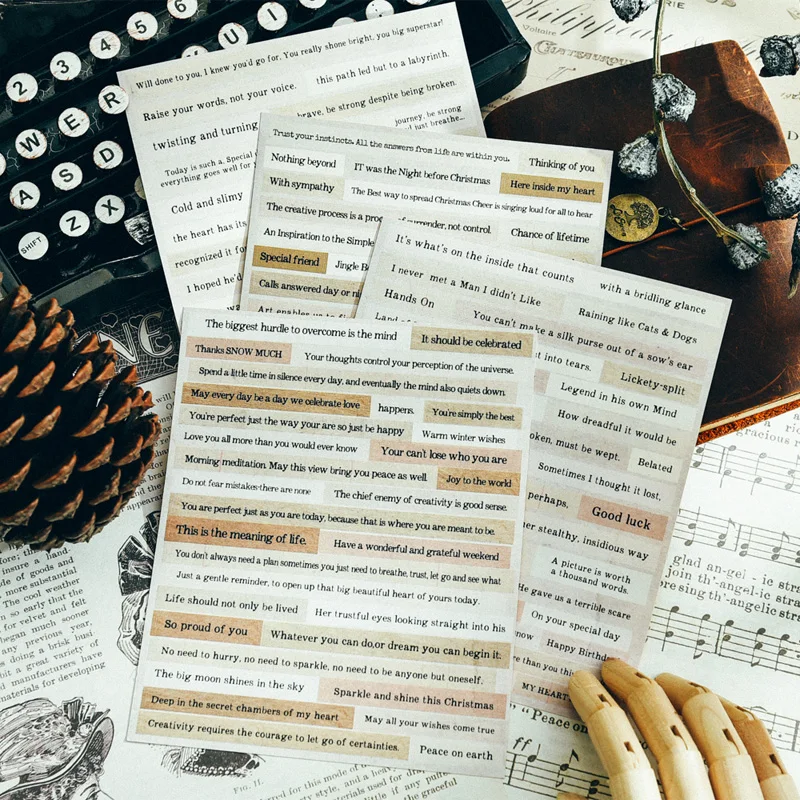 4 листа Ретро фраза нежелательный журнал ефемера винтажные наклейки...