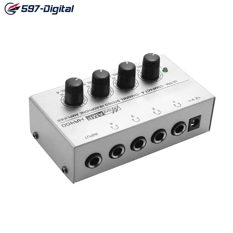 Усилитель австралийского, британского, американского, европейского стандарта, Ha400, ультракомпактный 4-канальный мини-усилитель для стереонаушников с адаптером питания, черныйсеребристый