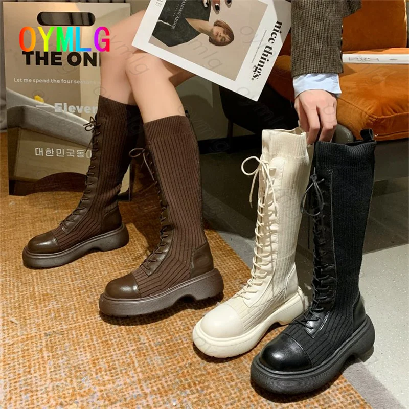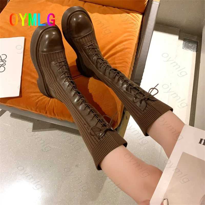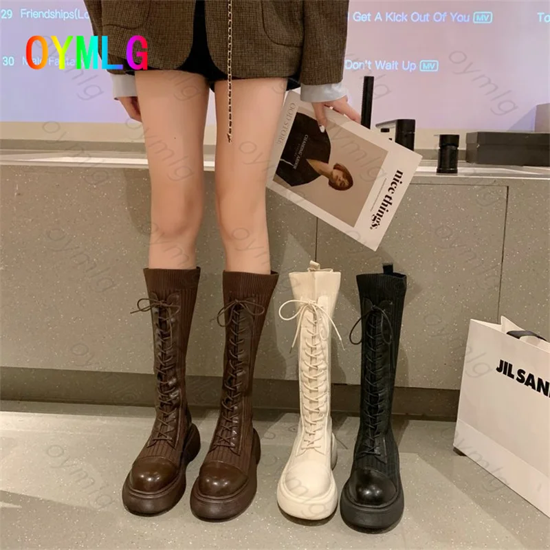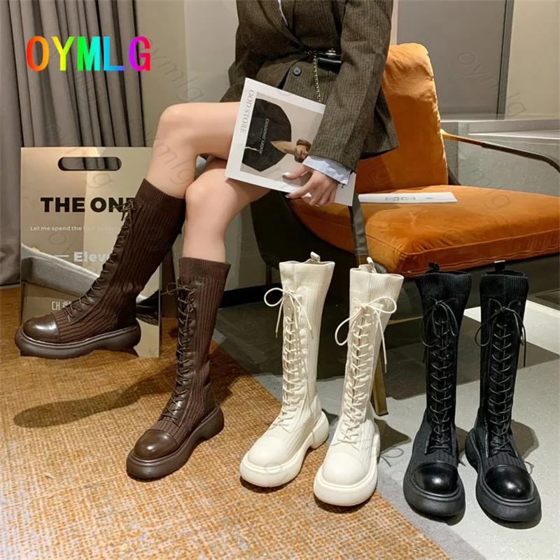 Женские сапоги для осенизимы 2021, новые модные сапоги на низком каблуке, сапоги до колена, обувь для женщин, сапоги до бедра, обувь