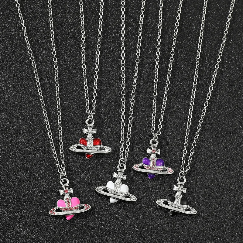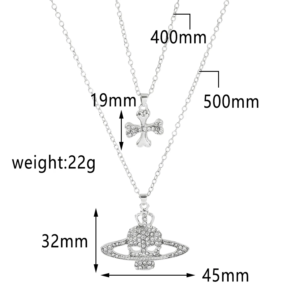 Модное металлическое Ожерелье Стразы серебристого цвета с черепом и Сатурном в стиле ретро панк для женщин и мужчин ювелирные изделия с подвесками для вечеринок аксессуары