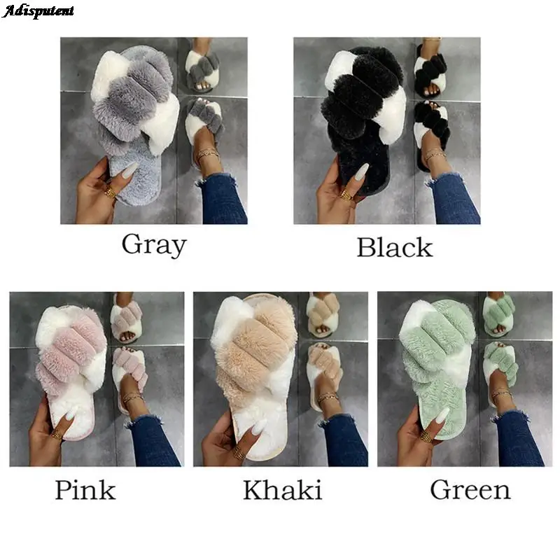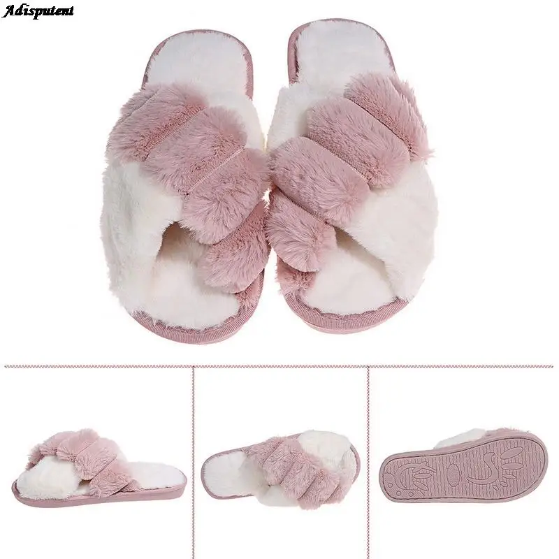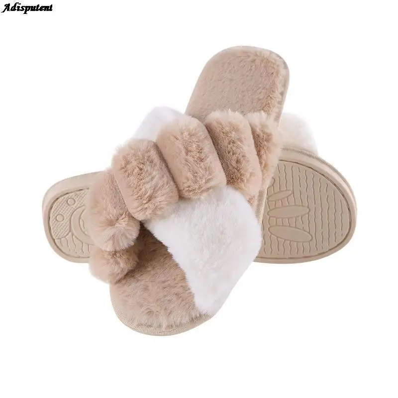 Женские шлепанцы, теплые пушистые тапочки, уютные сланцы из искусственного меха, мягкая стелька, толстая нескользящая обувь для дома