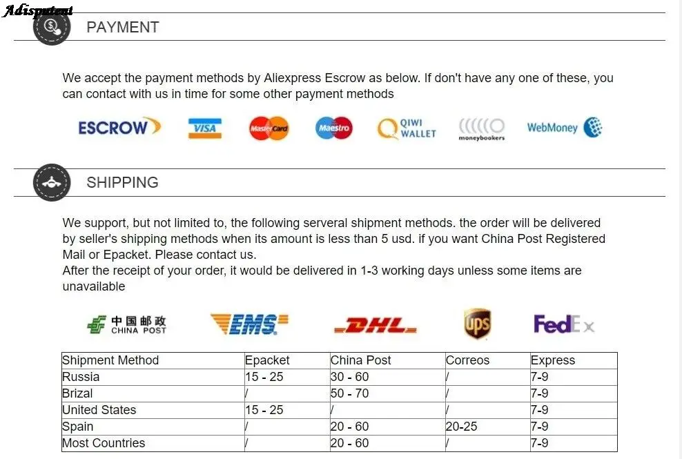 Для оптовой продажи: Мы предлагаем скидку и бесплатную доставку экспресс-почтой, которая занимает 3-8 дней.