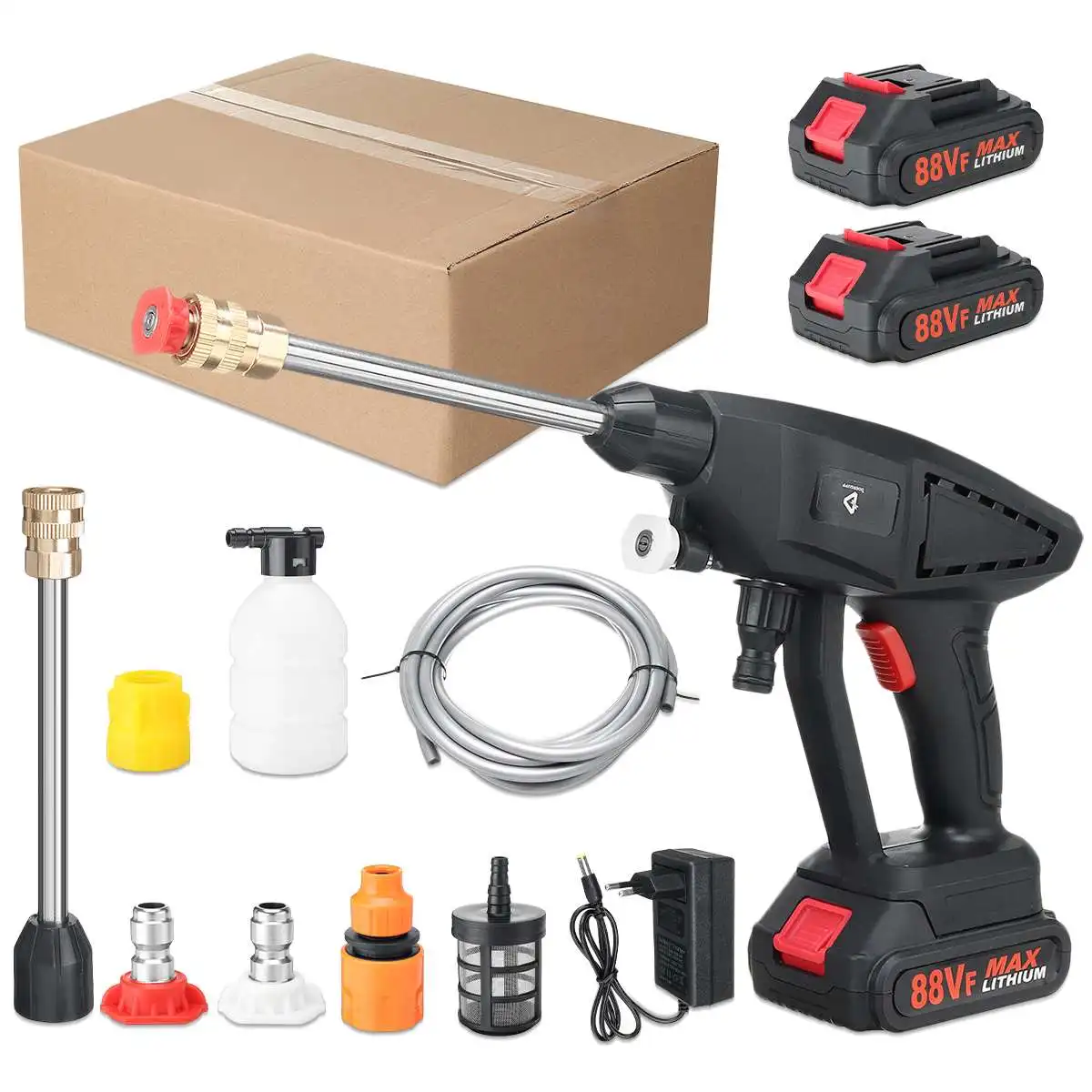 Особенности:● Дисплей уровня заряда батареи● Легкое хранение без места● Идеально подходит для полива сада, орошения в сельском хозяйстве, мытья автомобилей, уборки дома и т. д.● Сердечник из чистой медиВысокая мощность, сильная мощность, более прочный● Регулировка типа воды2 выхода воды + 1 сопло коробки пены, бесплатное преобразование трех типов воды● Пенопластовый горшокБыстрое вспенивание, богатая и деликатная пена, быстрая Чистка● Литиевая батарея большой емкостиДолговечность, портативный и съемный аккумулятор● Тонкий фильтр из АБС-пластикаГлубокая фильтрация примесей в воде, защита водяного насоса, длительный срок службыХарактеристики:Вилка (опция): штепсельная вилка европейского стандарта/штепсельная вилка американского стандартаБатарея (опция): 1 шт/2 шт/нет