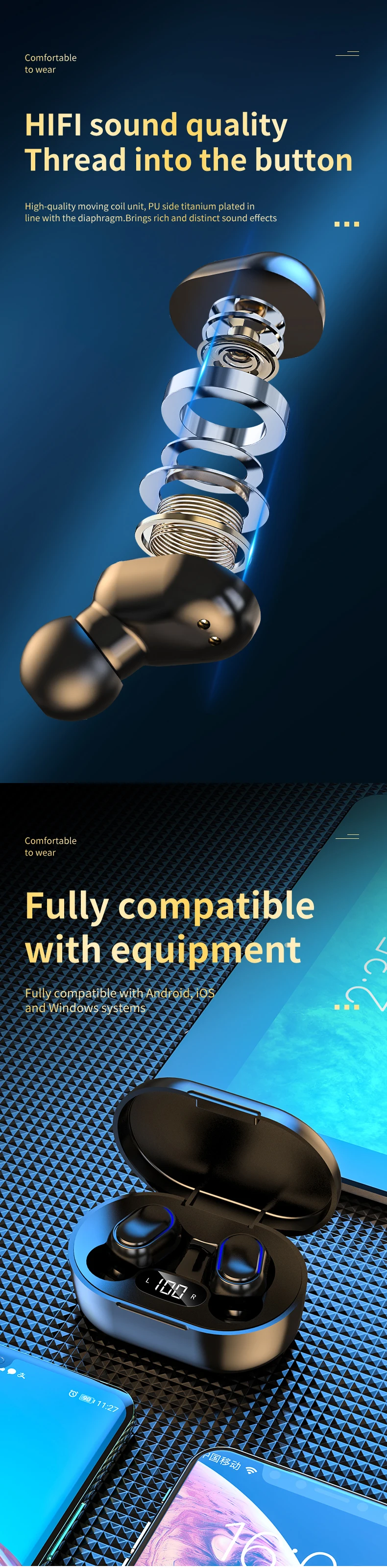 TWS-стереонаушники E7S с поддержкой Bluetooth 5,0 и светодиодным ди...