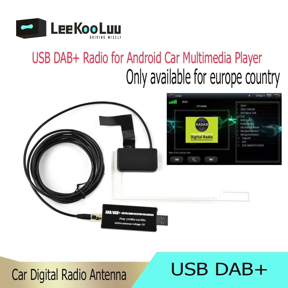 Leekooluu DAB радио приемник в автомобиле антенна цифровой DAB + адаптер тюнер коробка аудио USB усиленная петля антенна для Android радио