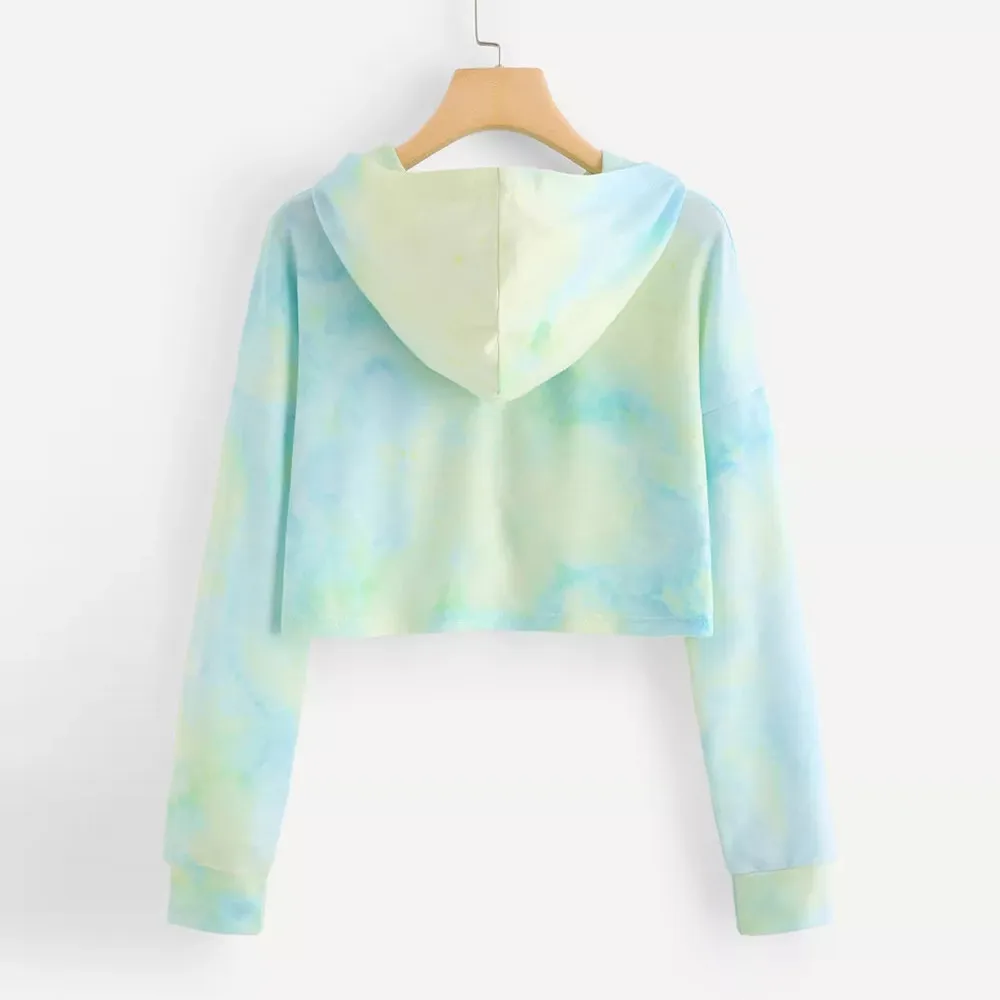 Укороченная толстовка с капюшоном и принтом тай-дай, повседневный осенний пуловер, кофта с капюшоном для девочек-подростков